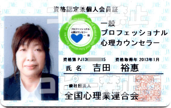 全国心理業連合会公認 一般プロフェッショナル心理カウンセラー